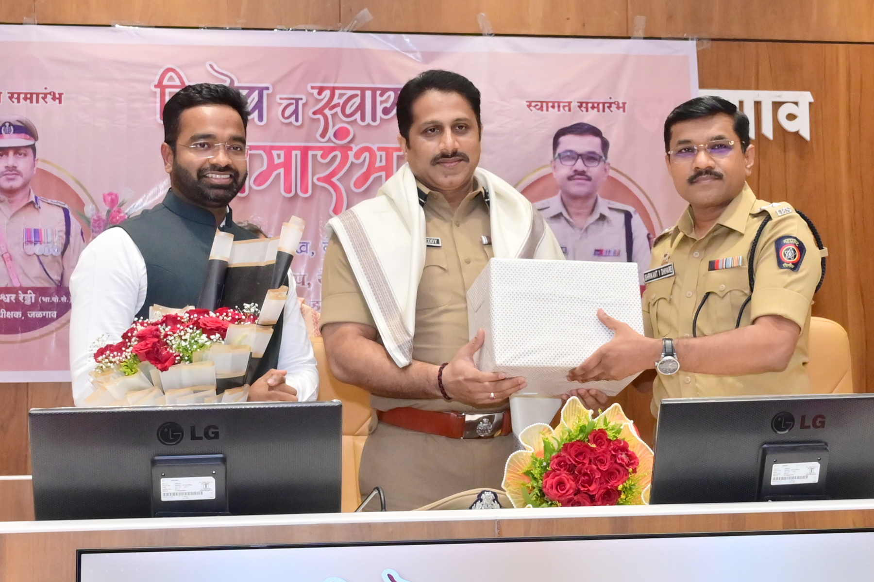 विशेष अभिनंदन – जळगाव जिल्हा पोलीस दलाने 100 दिवस कृती कार्यक्रमामध्ये खालील मुद्द्यांवर उत्कृष्ट कामगिरी केली. नागरिकांसाठी User friendly website बनविणे, नागरिकांना सुलभ सेवा देण्यासाठी जलद पारपत्र व चारित्र्य पडताळणी प्रक्रिया, नागरिकांच्या तक्रारींचा त्वरित निपटारा करण्यासाठी तक्रार निवारण दिवस राबवणे, QR code द्वारे जिल्ह्यातून कुठूनही ऑनलाईन तक्रार नोंदवणे, प्रत्येक कार्यालय व पोलीस ठाण्यात अभ्यागतांच्या सुलभतेसाठी अभ्यागत मदत कक्ष उभारणे, पोलीस ठाण्यात वर्षानुवर्ष पडून असलेल्या निरुपयोगी वाहनांची त्वरित निर्गती करून परिसर स्वच्छता, मुदतबाह्य अभिलेखांचे निर्लेखीकरण, पोलिसांचे मनोबल उंचावण्यासाठी Top Cop Of The Month संकल्पना राबवणे, इत्यादी विभागातून चांगली कामगिरी केल्यामुळे संपूर्ण महाराष्ट्र राज्यातून जळगाव जिल्हा पोलीस दलाने तिसरा क्रमांक पटकाविला आहे..त्याबद्दल संपूर्ण जळगाव जिल्हा पोलीस दलाचे मनःपूर्वक अभिनंदन.